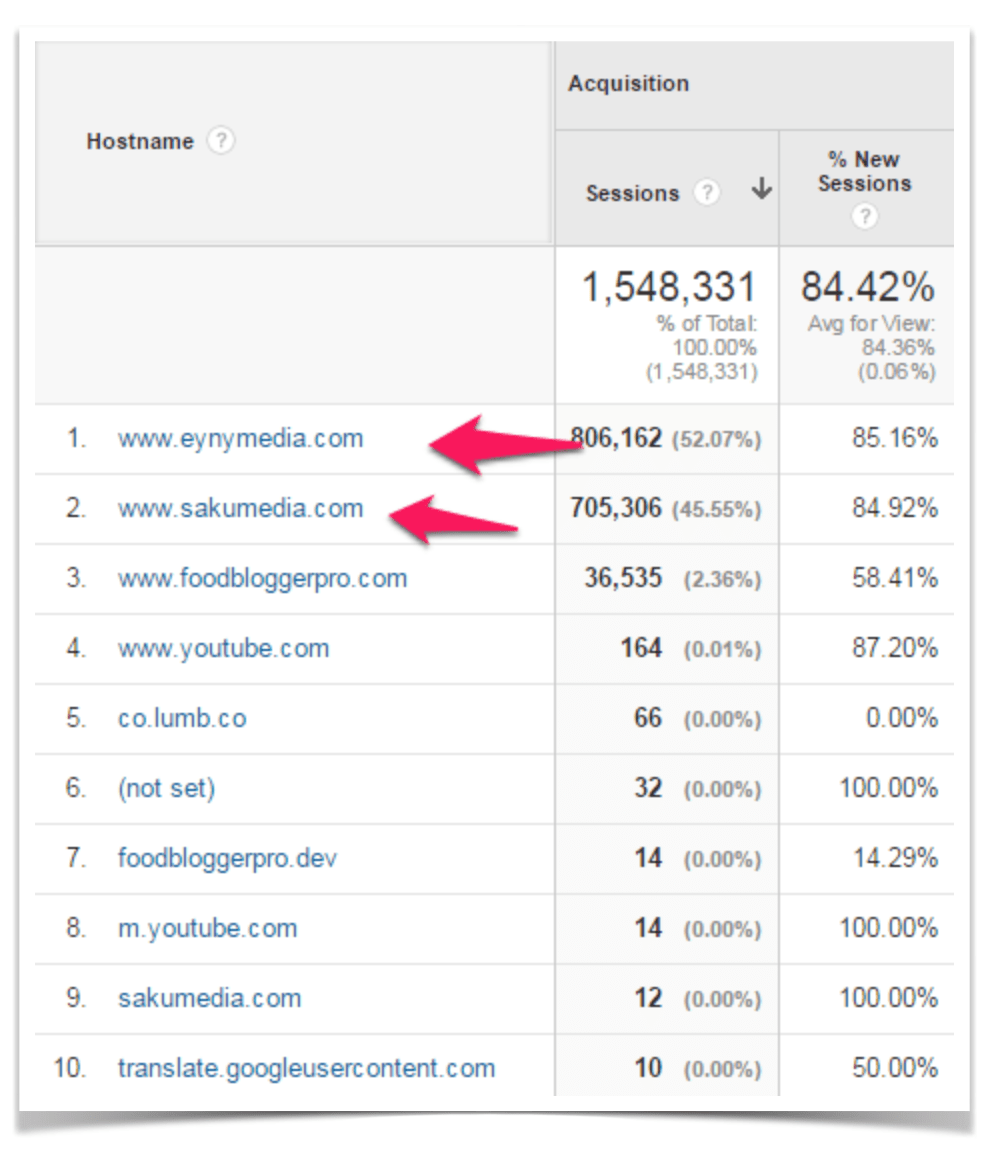 I checked in with some developers, a consultant, our hosting company, and even asked on the Google Forums, but came up empty in troubleshooting what was going on. That’s when FBP team member Raquel dug into the analytics and found that the issue was coming from two sites that were scraping FBP’s blog.