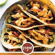 Fajitas with bell peppers, mushrooms, and cashew queso.